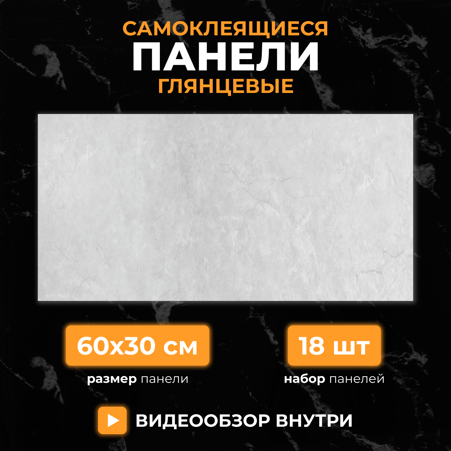 Светло-серый мрамор, 60х30 см плитка глянцевая, самоклеющиеся панели для стен, декор для дома на кухню, в ванную (арт. 1018) 18 шт. 1 617 ₽