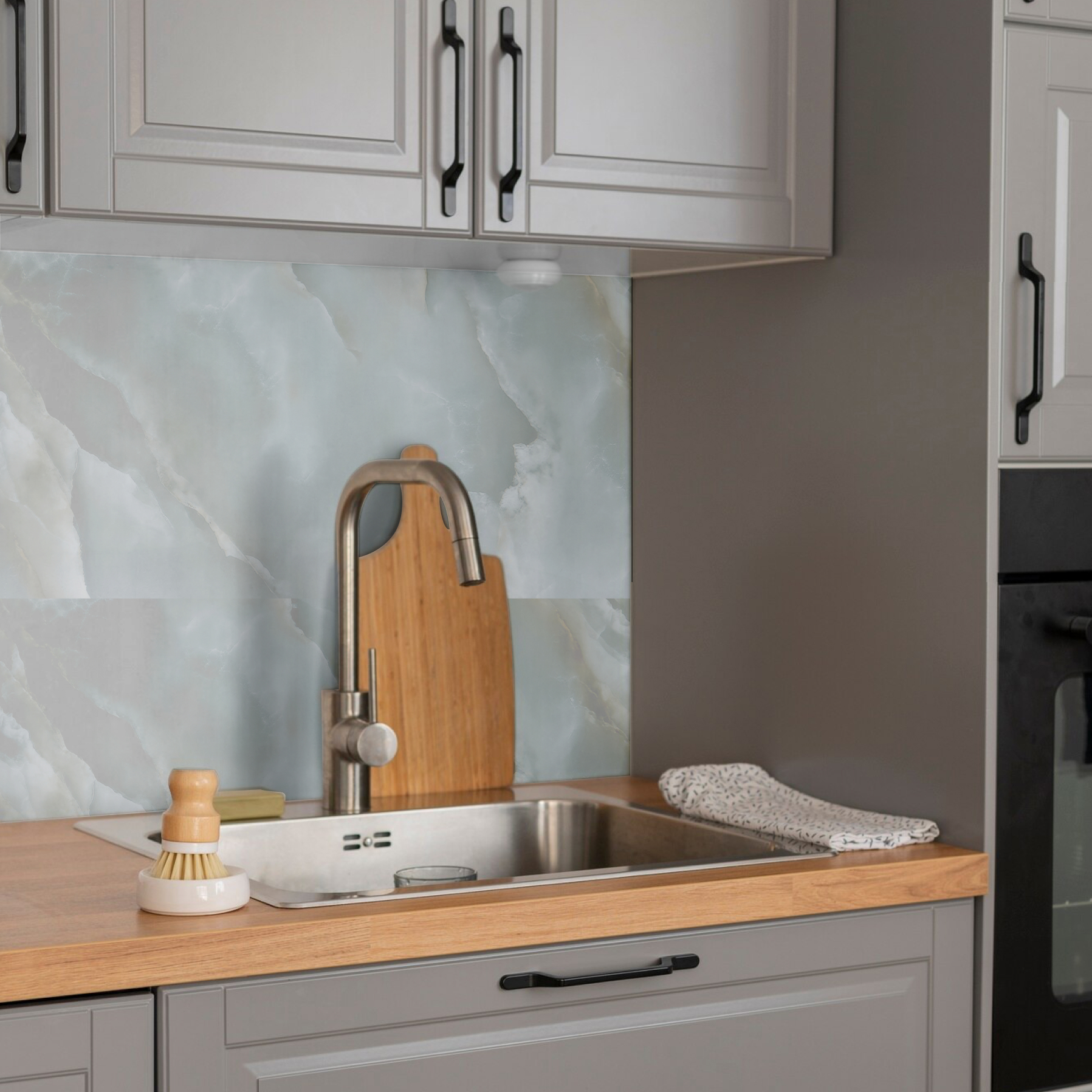 Небесный мрамор, 60х30 см плитка глянцевая, самоклеющиеся панели для стен, декор для дома на кухню, в ванную (арт. 910) 18 шт. информация: