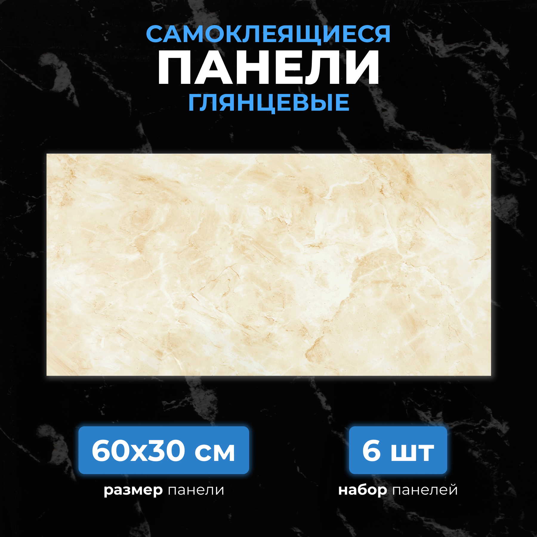 Светло-желтый мрамор, 60х30 см плитка глянцевая, самоклеющиеся панели для стен, декор для дома на кухню, в ванную (арт. 8011) 6 шт. информация: