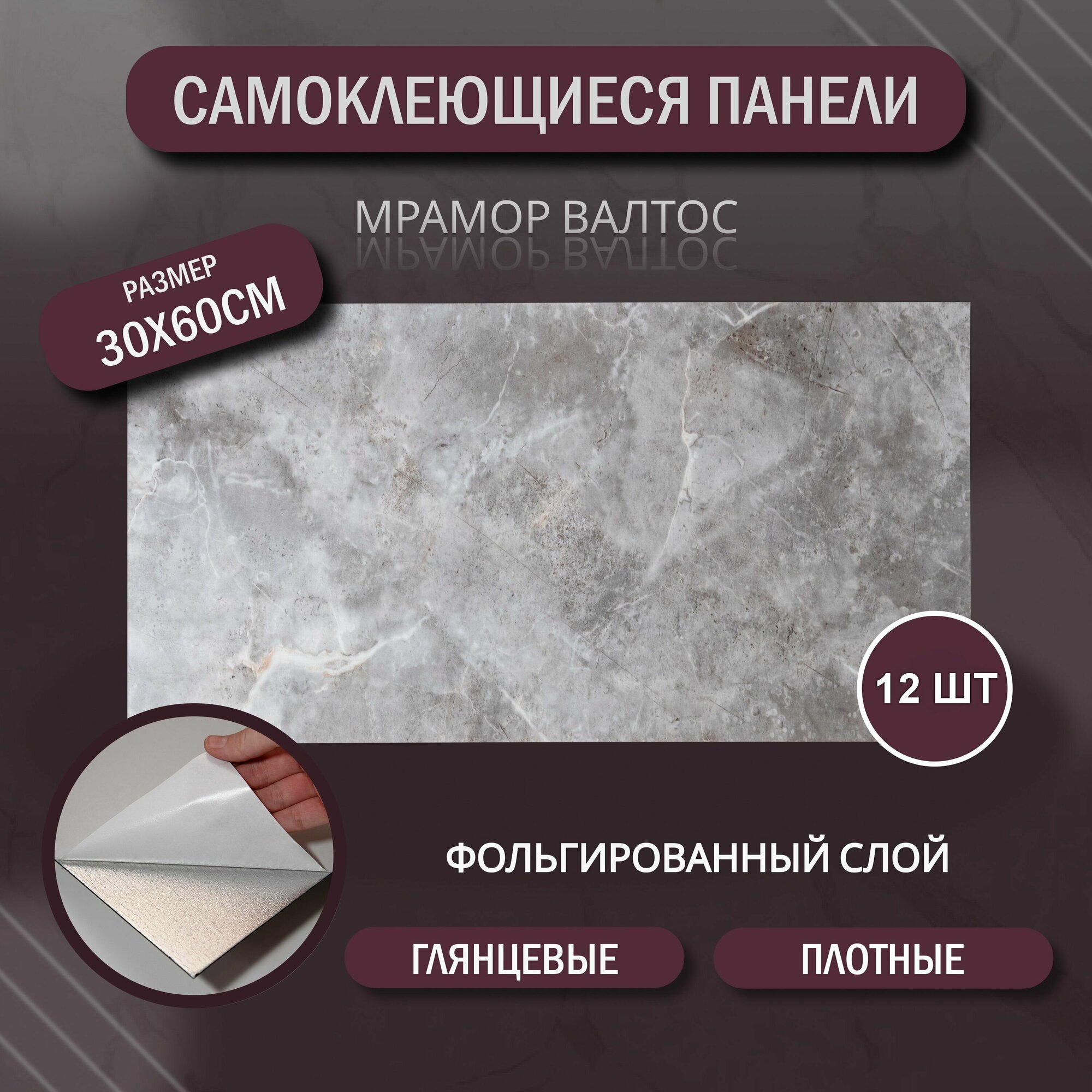 10 цен на Самоклеющиеся панели для стен с фольгой "Мрамор Валтос" 60х30 см 12 шт плитка глянцевая, декор для дома на кухню, в ванную
