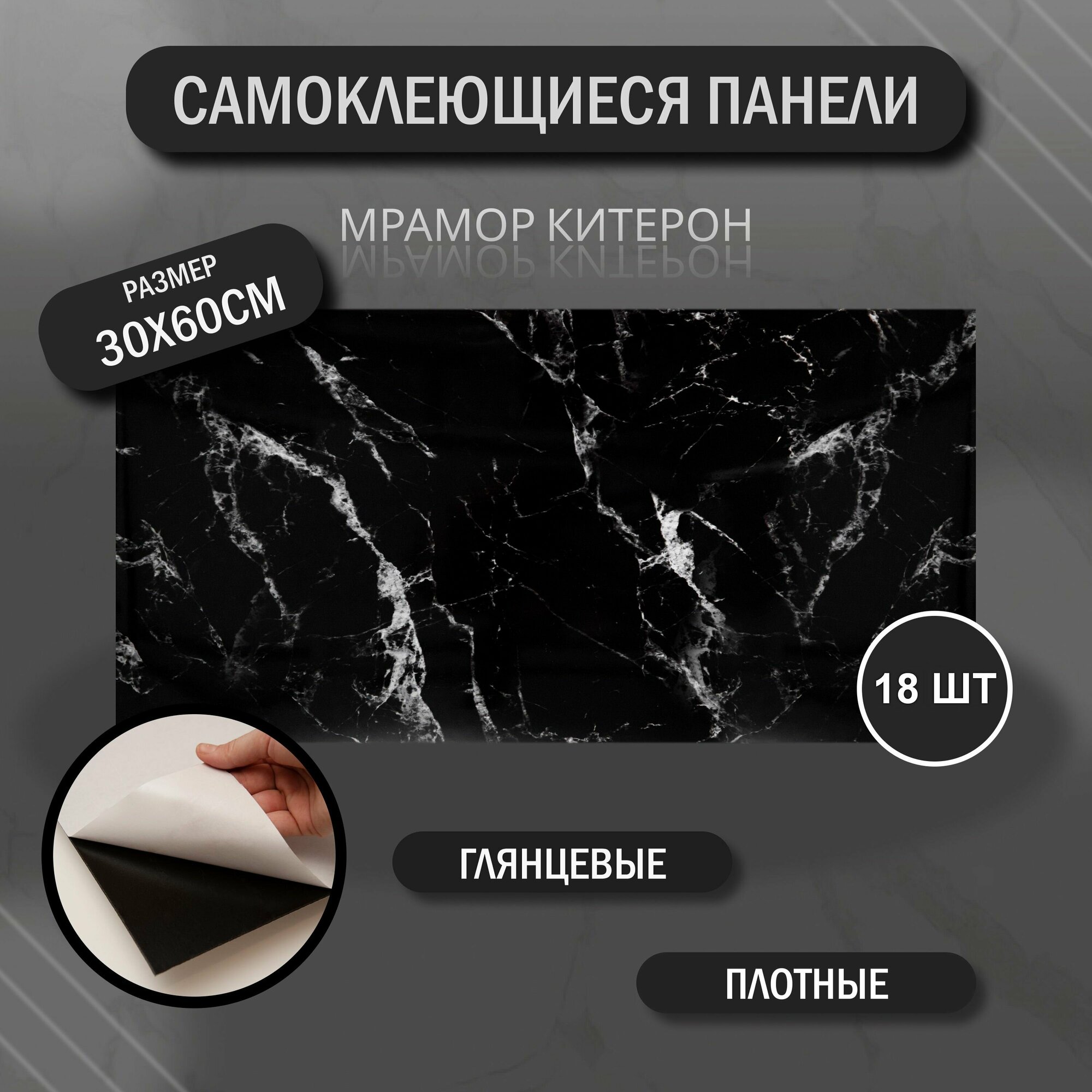 Самоклеющиеся панели для стен "Мрамор Китерон" 60х30 см (18 шт) плитка глянцевая, декор для дома на кухню, в ванную информация: