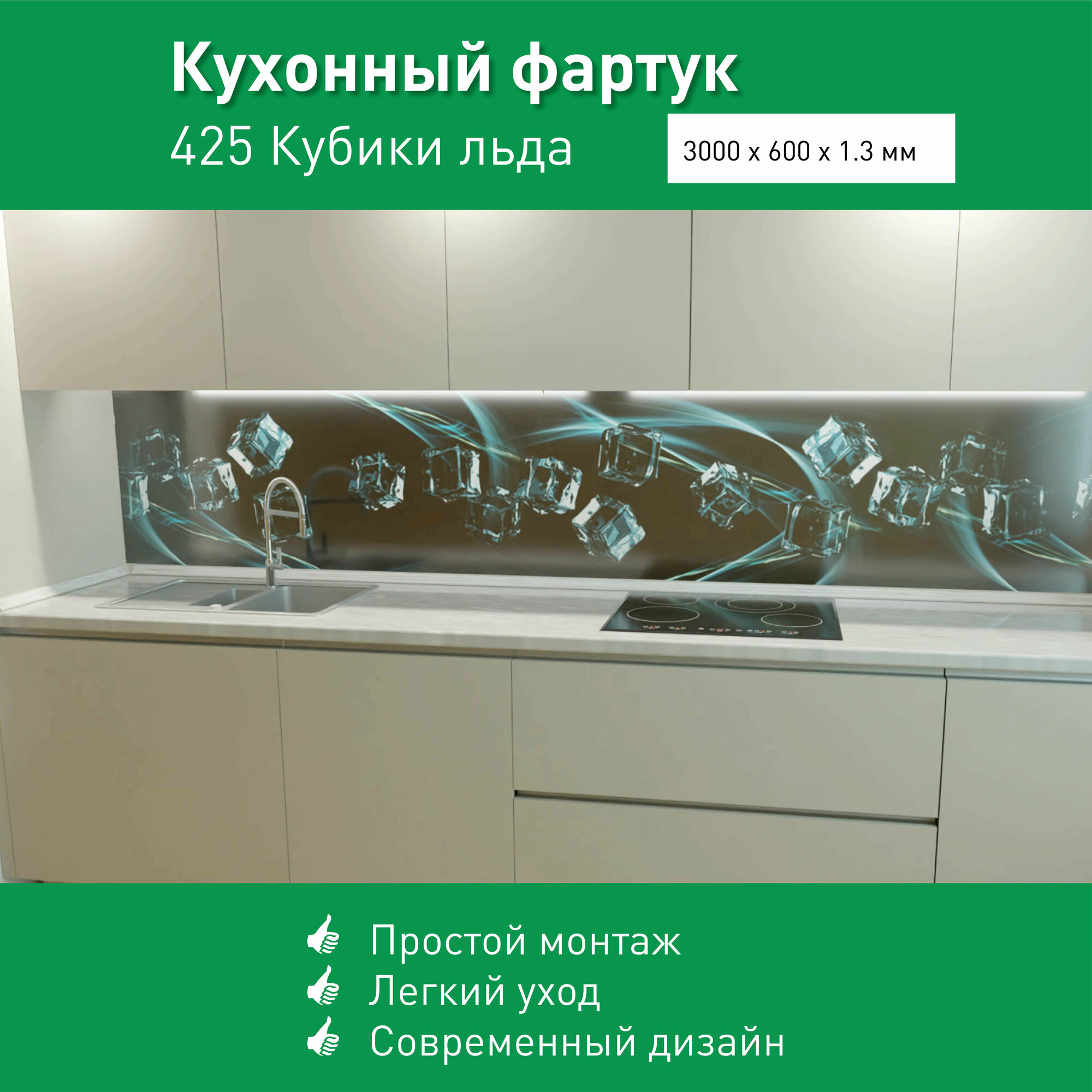 Фартук для кухни на стену из ПВХ Кубики льда 3000*600мм фотопечать информация: