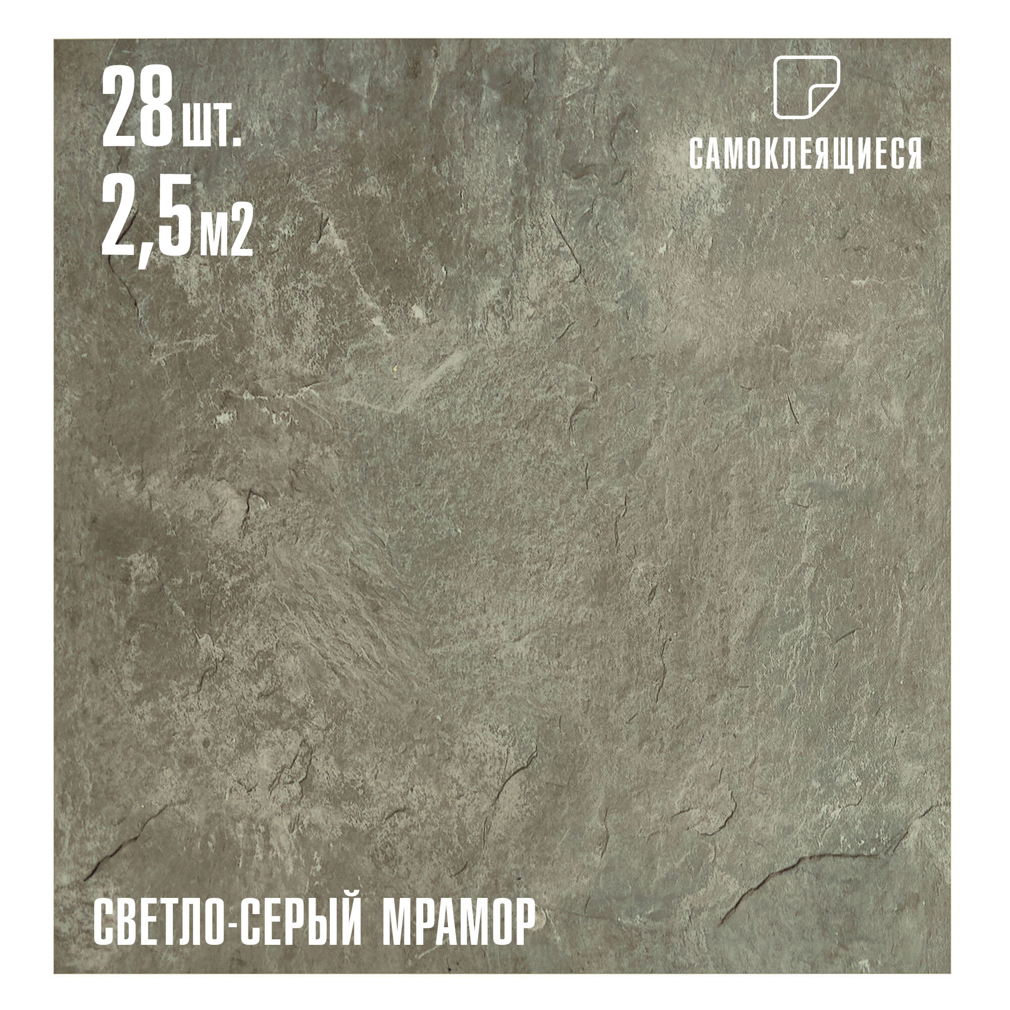 10 цен на Комплект 28шт. Самоклеящаяся ПВХ плитка LAKO DECOR "Светло-серый мрамор", толщина 2мм, 2.52м²