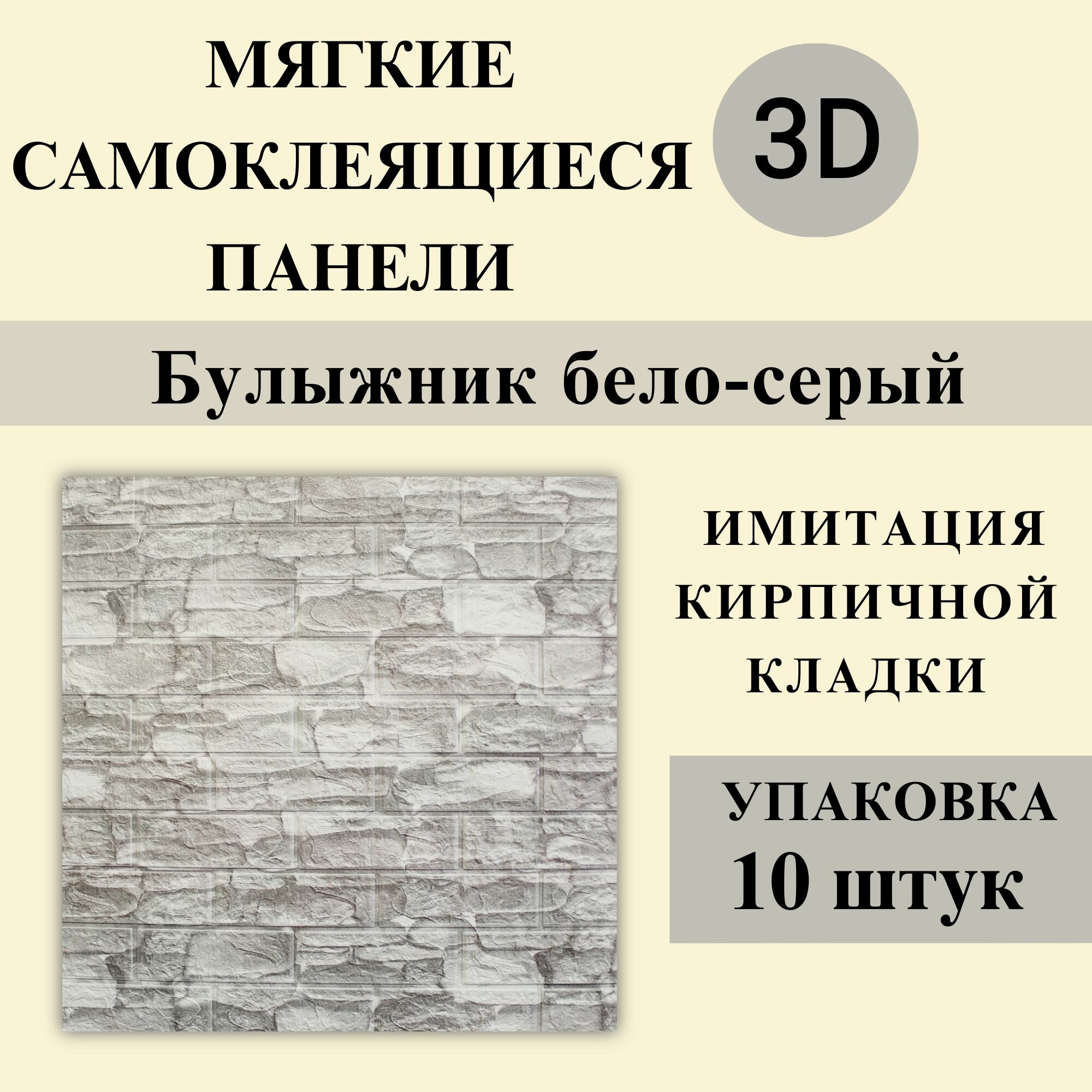 10 цен на Панели 3D самоклеящиеся для стен арт 327 "Булыжник бело-серый" 700х770х3мм 10шт