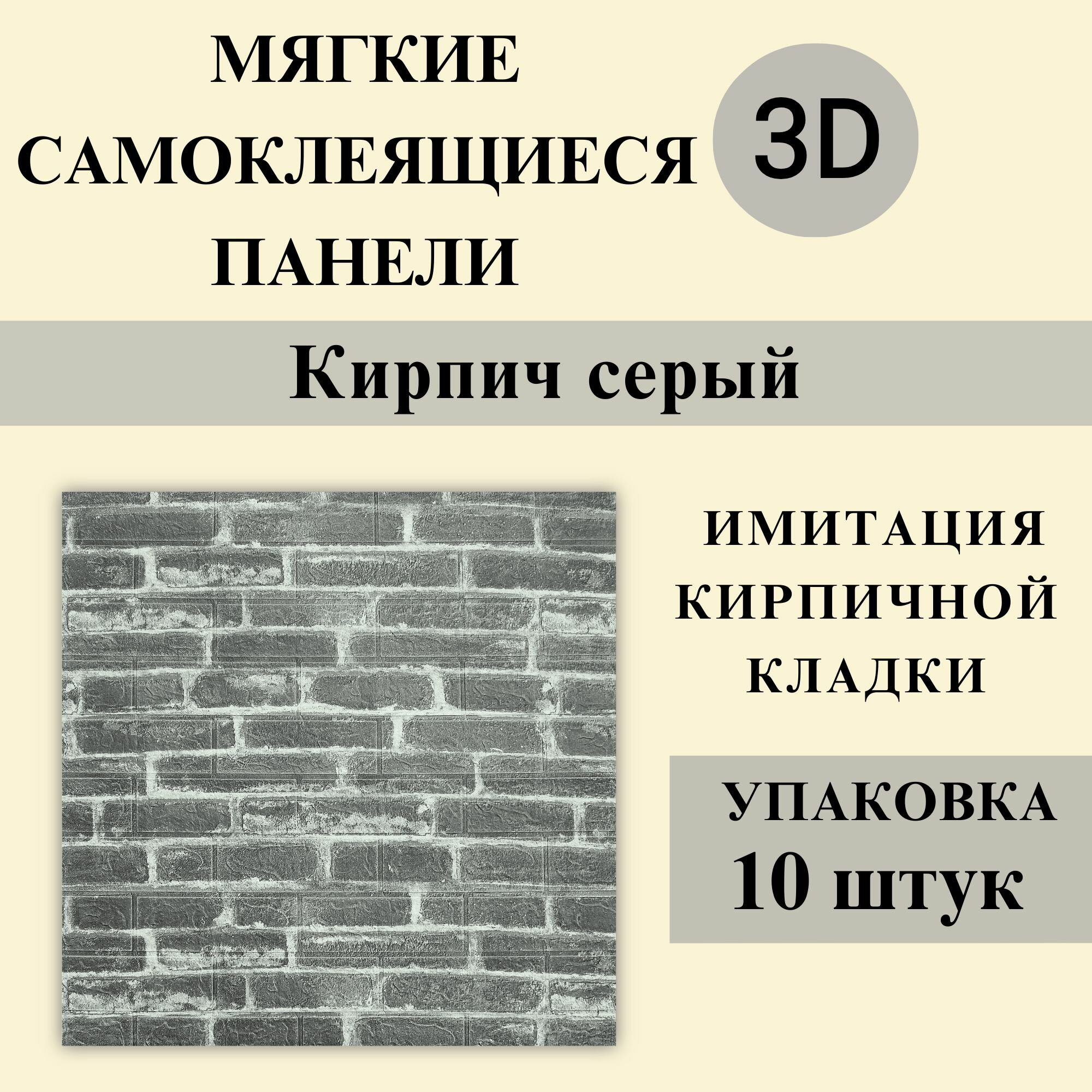 10 цен на Панели 3D самоклеящиеся для стен арт 364 "Кирпич серый" 700х770х3мм 10шт
