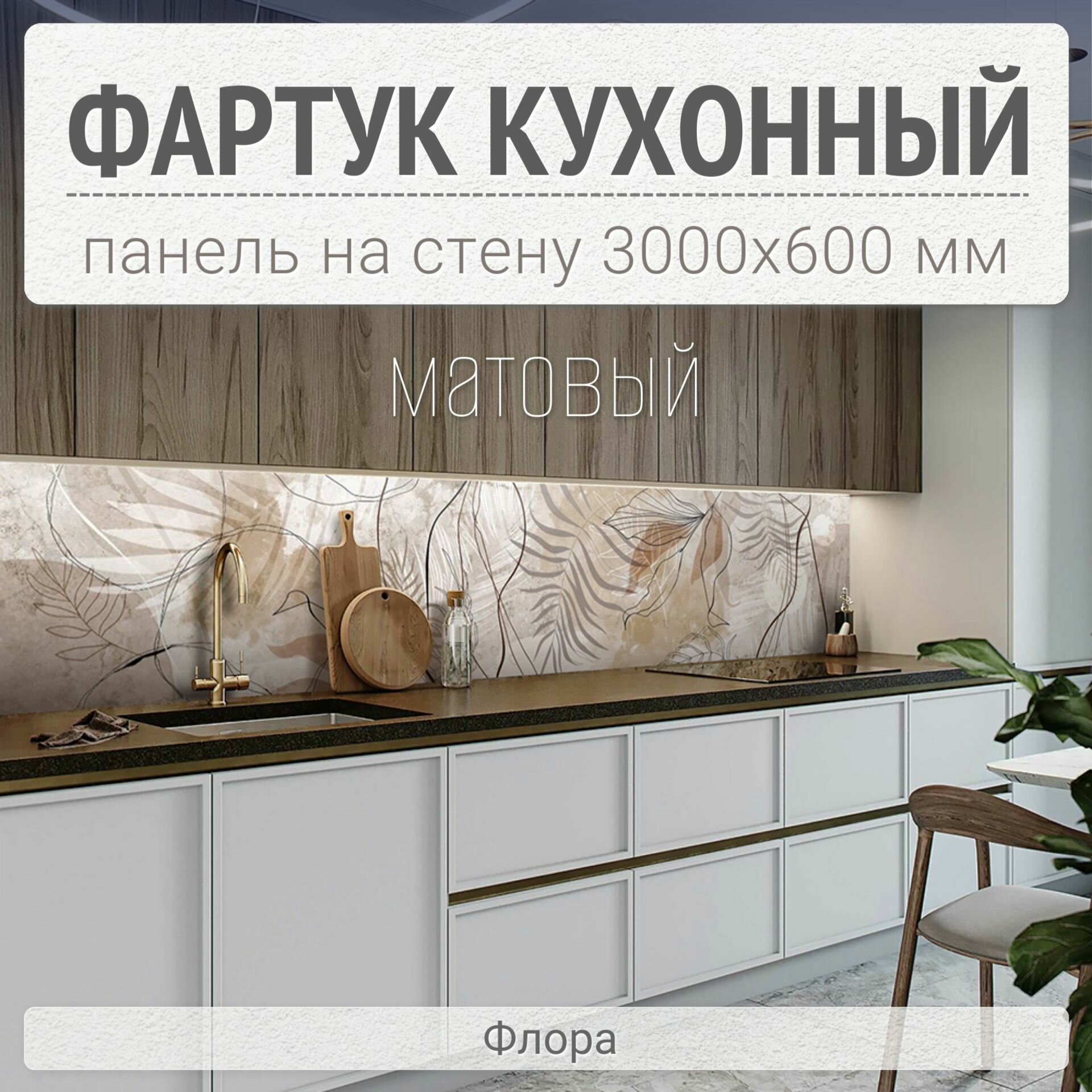 Фартук для кухни на стену 3000х600 мм, Флора. Панель стеновая ПВХ влагостойкая декоративная информация: