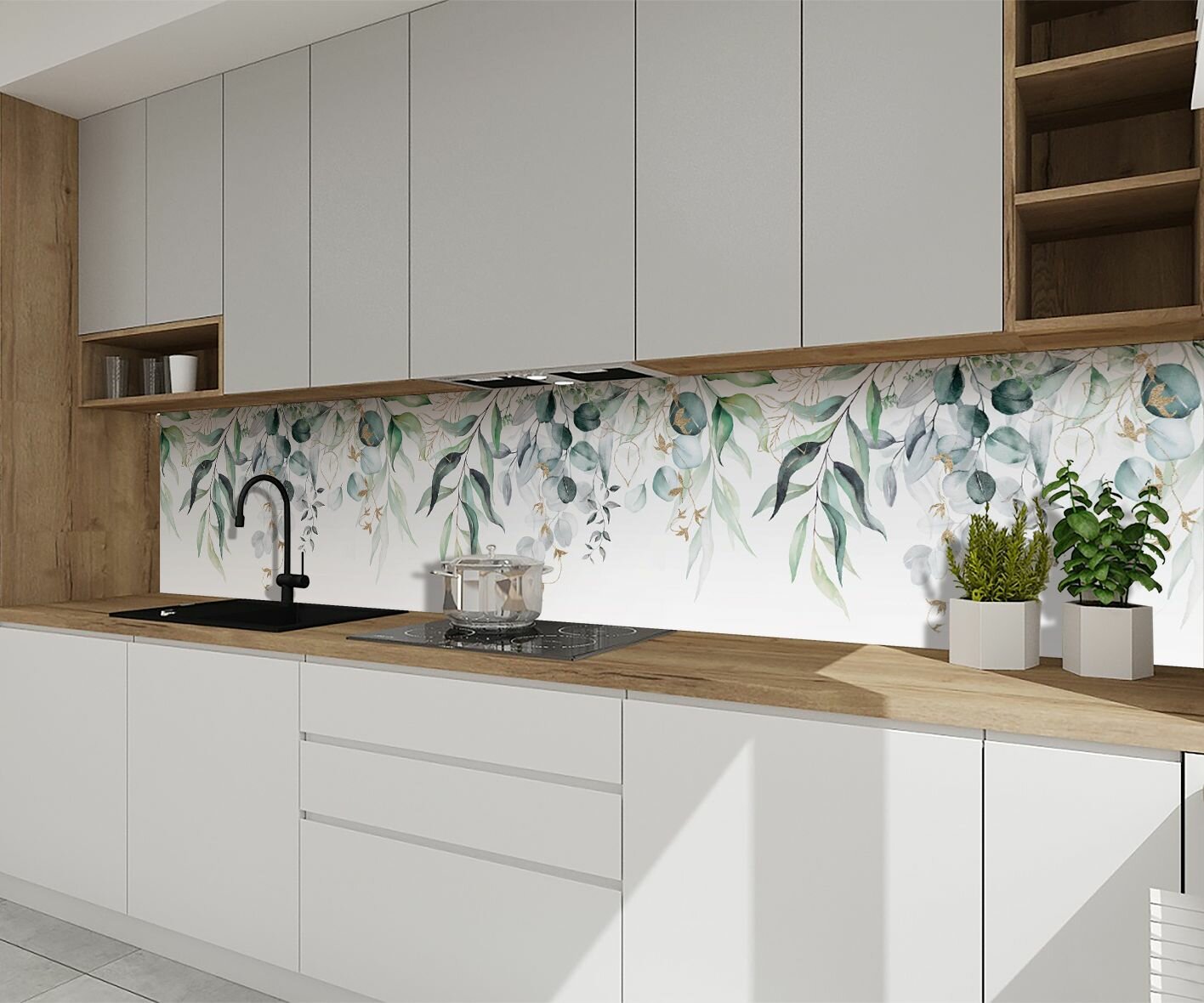 Фартук для кухни на стену 3000х600 мм, Листья в графике . Панель стеновая ПВХ влагостойкая декоративная 2 990 ₽