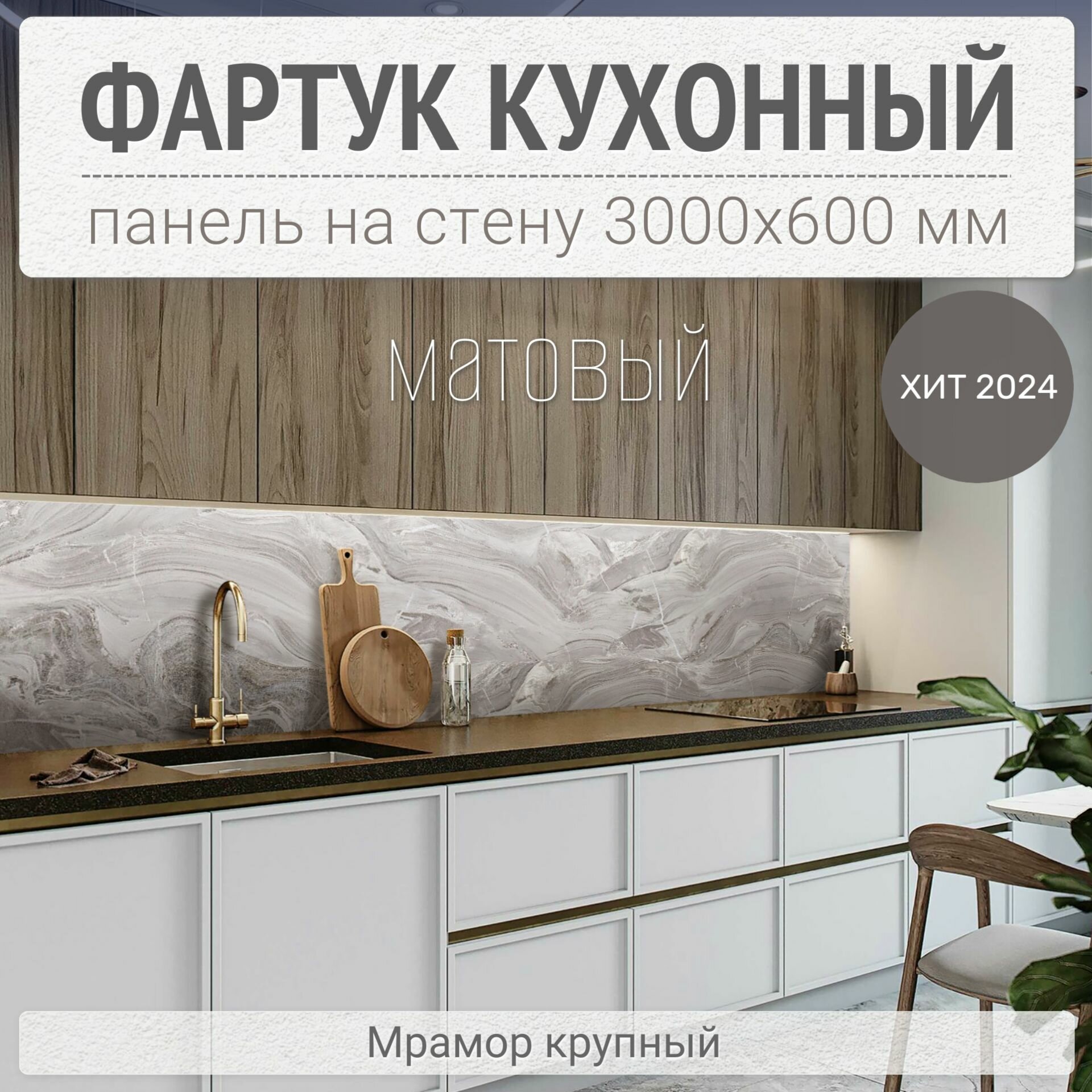 10 цен на Фартук для кухни на стену 3000х600 мм, Мрамор крупный. Панель стеновая ПВХ влагостойкая декоративная
