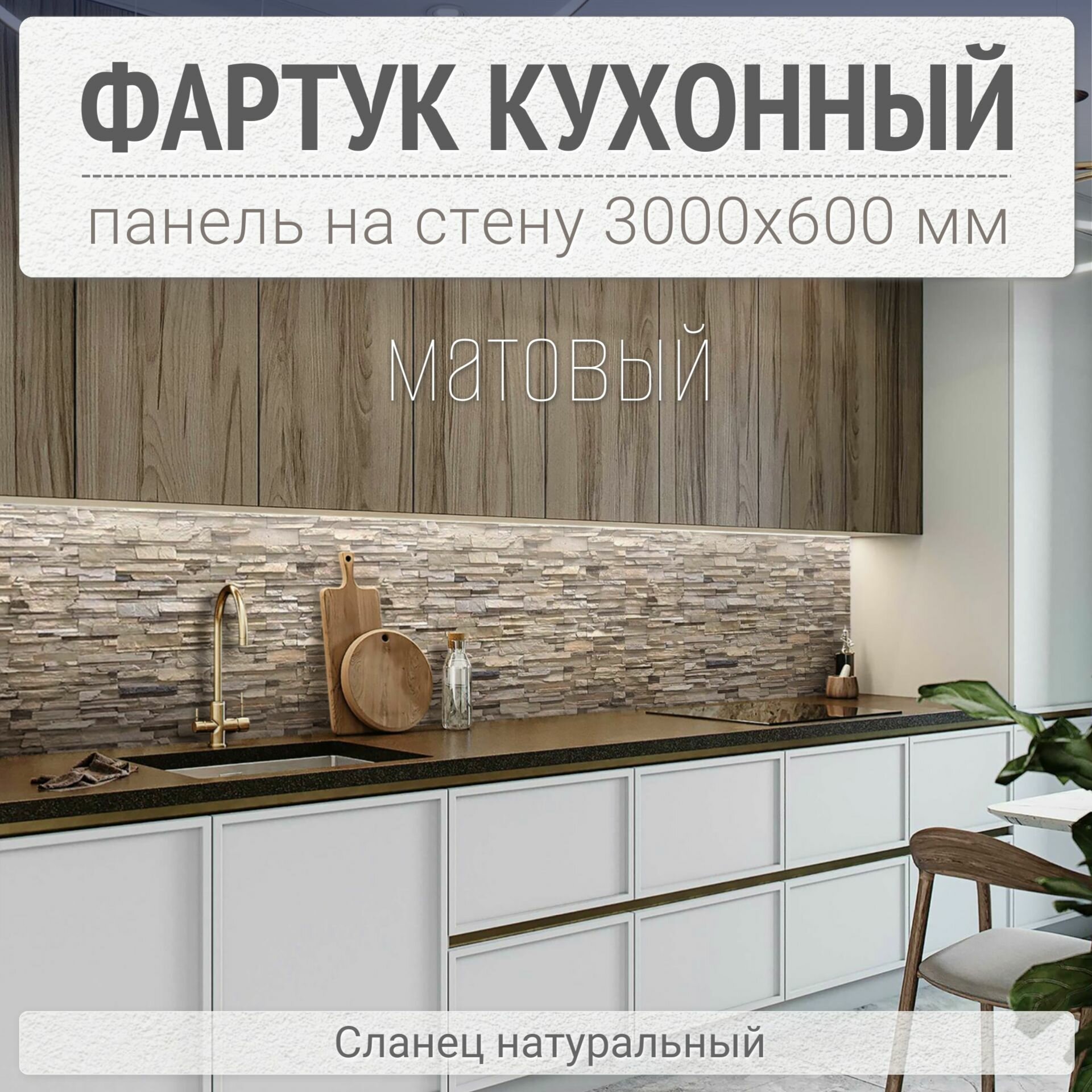 Фартук для кухни на стену 3000х600 мм, Сланец натуральный. Панель стеновая ПВХ влагостойкая декоративная информация: