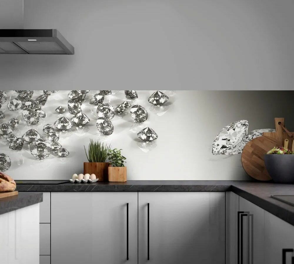10 цен на Фартук для кухни на стену 3000х600 мм, Сваровски. Панель стеновая ПВХ влагостойкая декоративная