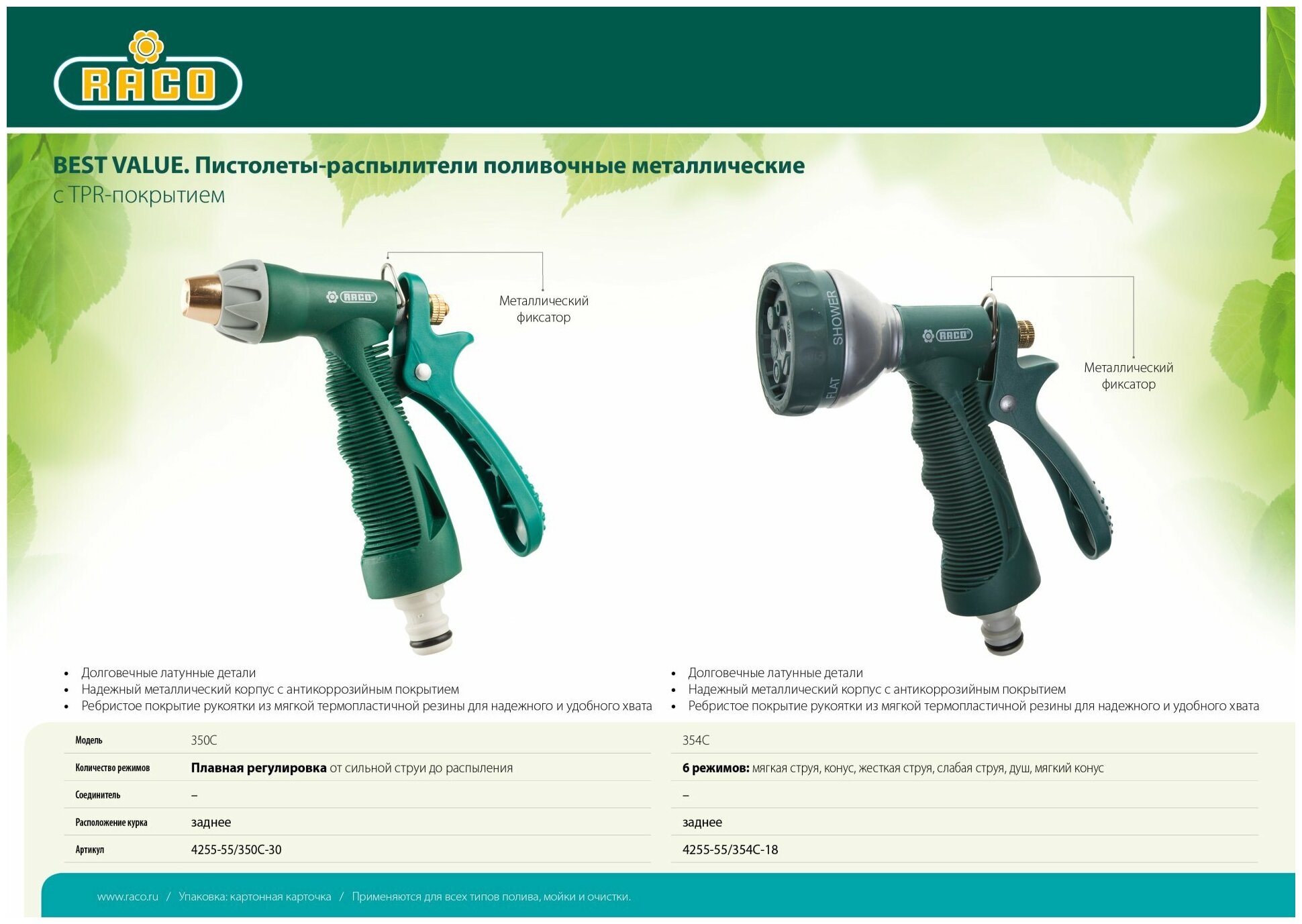 RACO 350C плавная регулировка, курок сзади, пистолет поливочный металлический с TPR информация: