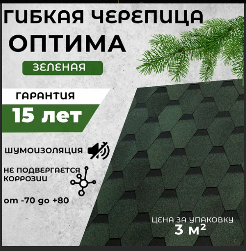 Гибкая черепица для кровли оптима соната зеленый 3м2 22шт в упаковке информация: