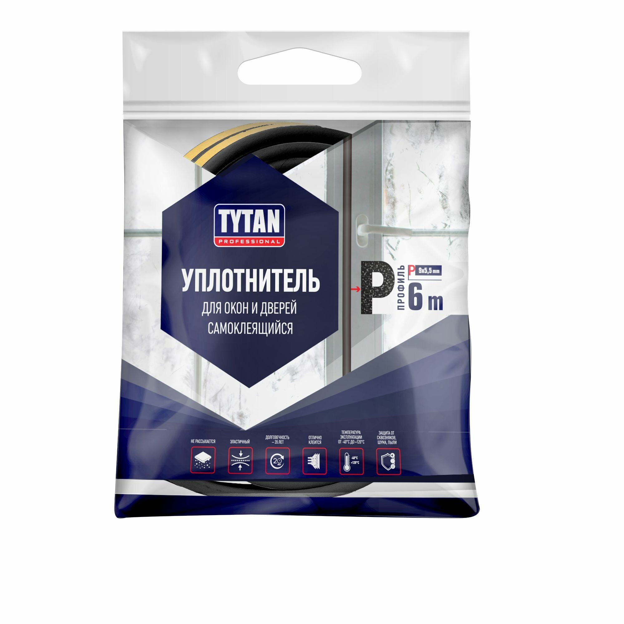 Уплотнитель для окон и дверей самоклеящийся TYTAN Professional Р-профиль 9х5,5мм , 6м черный информация: