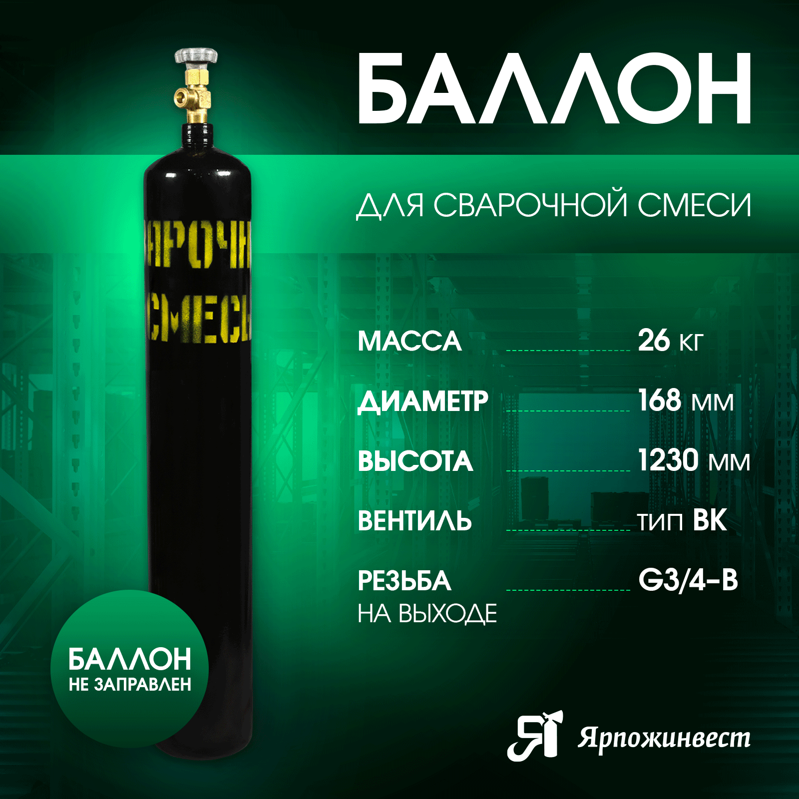 Баллон сварочная смесь 20 л., D = 168, 150 атм., ВК-1, Сварной, Ярпожинвест информация: