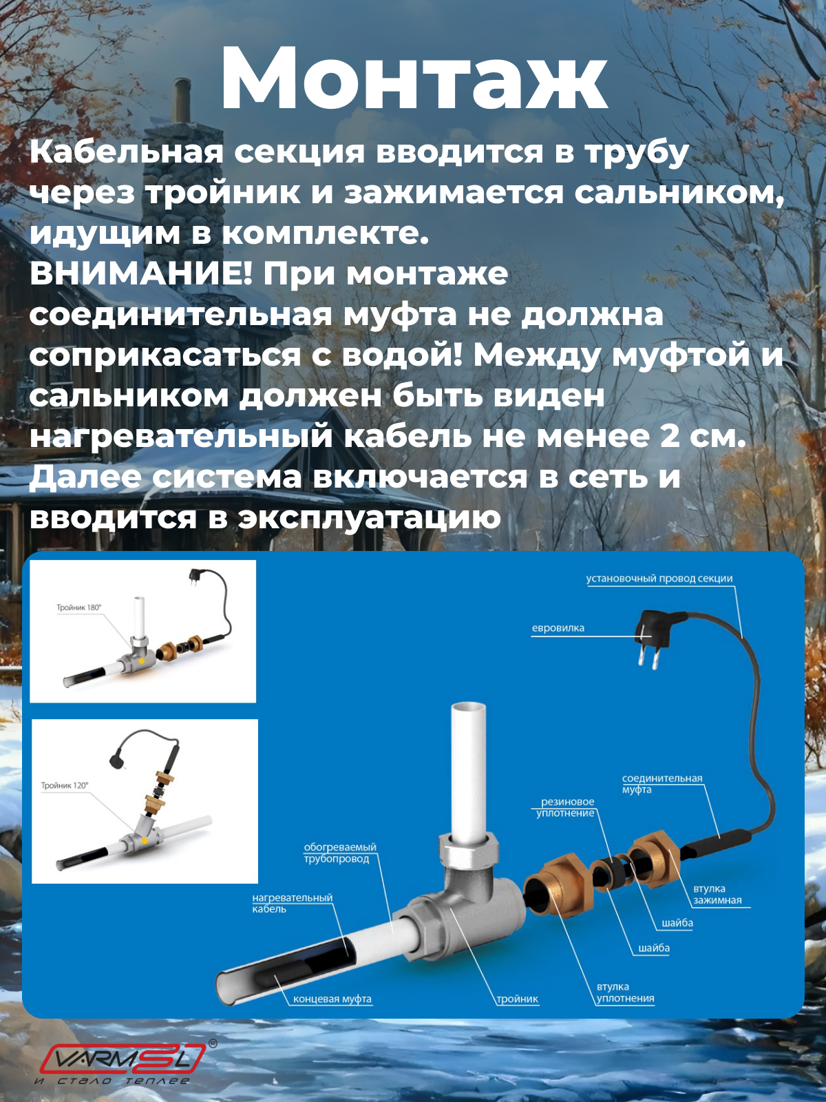 Отзывы на Кабель для обогрева труб Varmel Freeze Guard 16VFGM2-CF-8м секция (пищевой)