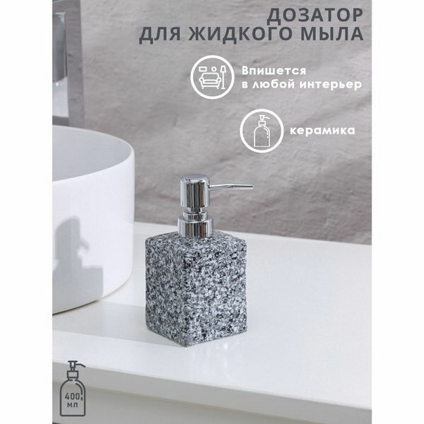 Дозатор для жидкого мыла "Гранит", 400 мл, цвет серый информация: