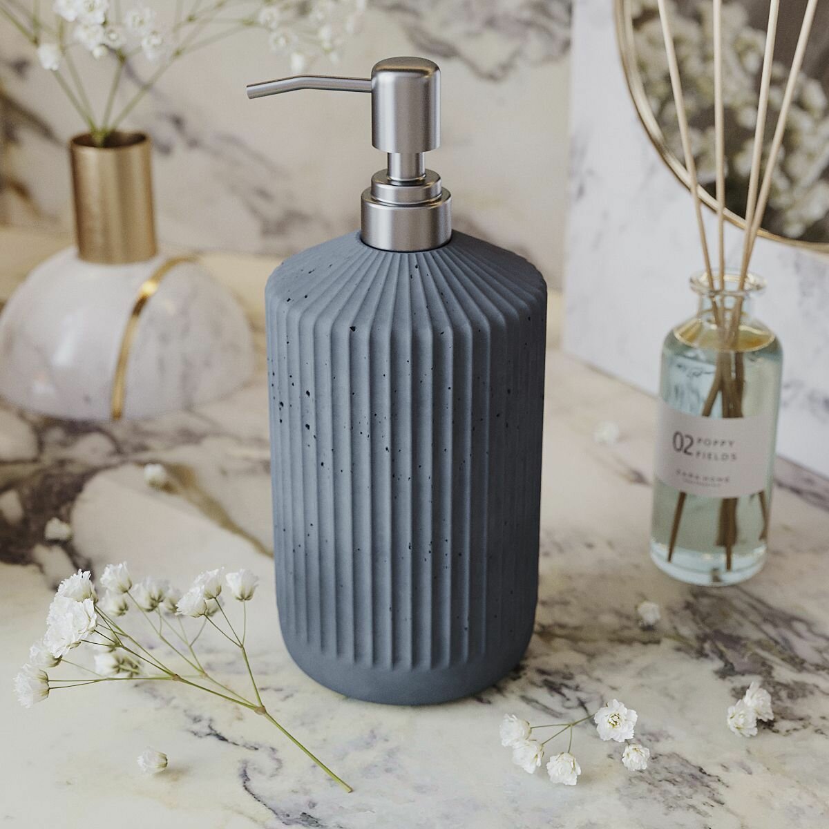 Отзывы на Дозатор для жидкого мыла и моющего средства, диспенсер для мыла с металлической насадкой Chloe, 0,4 л, из бетона, графитовый матовый