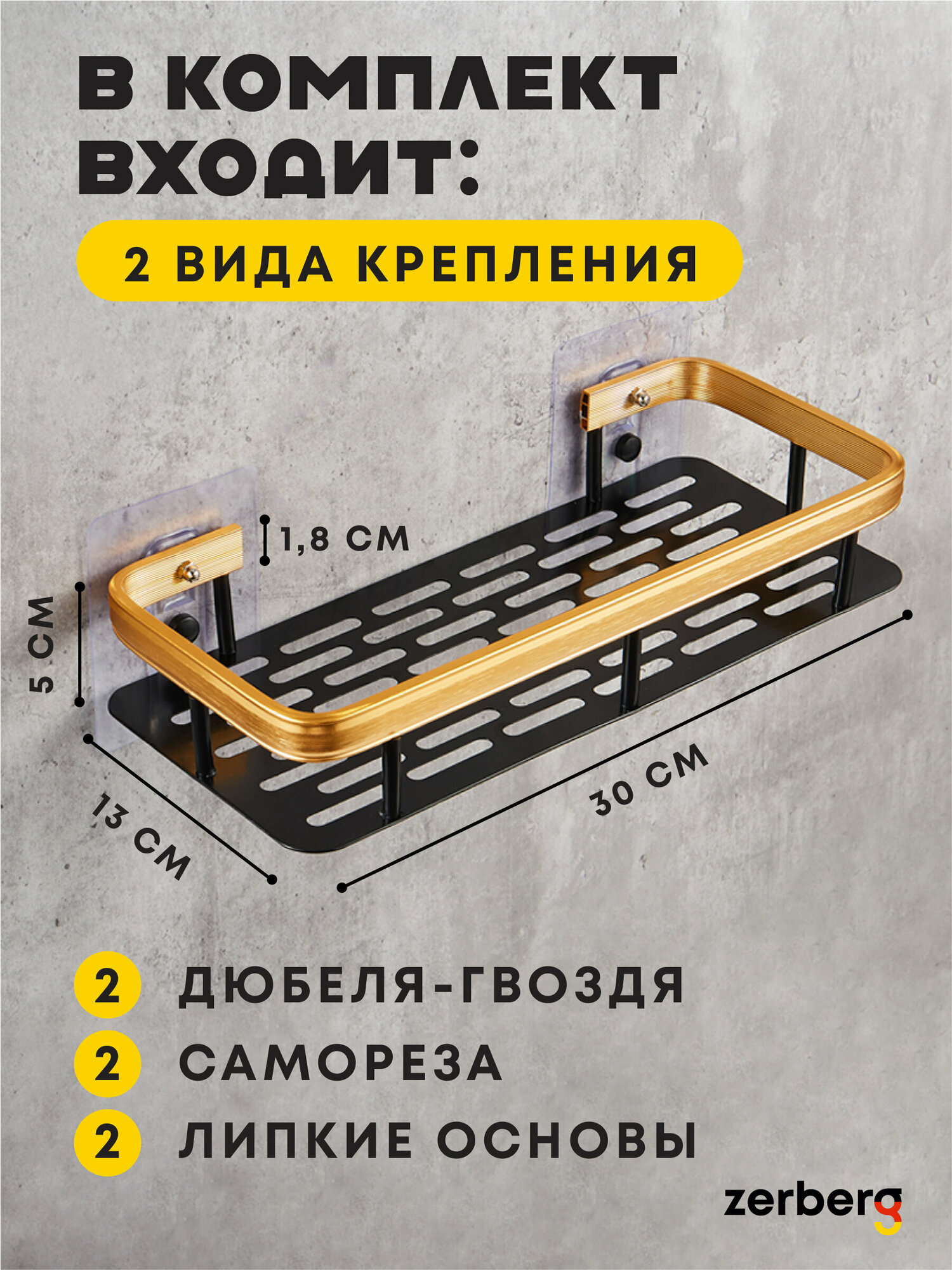 Отзывы на Полка для ванной и кухни, 30х13х5, металлическая, с ограничителем и решеткой Zerberg