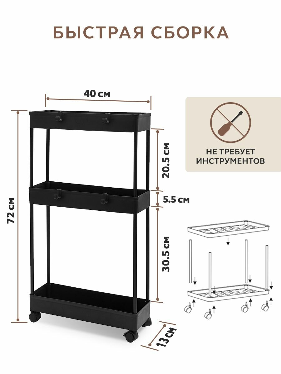 Стеллаж органайзер GASTRORAG GR-750-BBH узкий пластиковый, на колесиках в ванную информация: