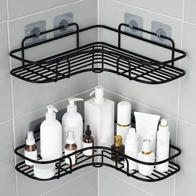 10 цен на Полка угловая для ванной комнаты и кухни, черная, 2шт
