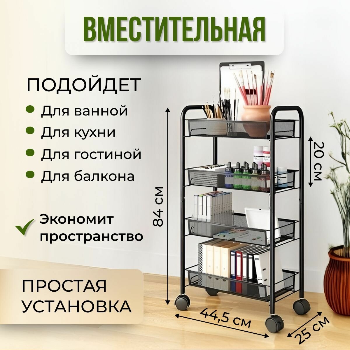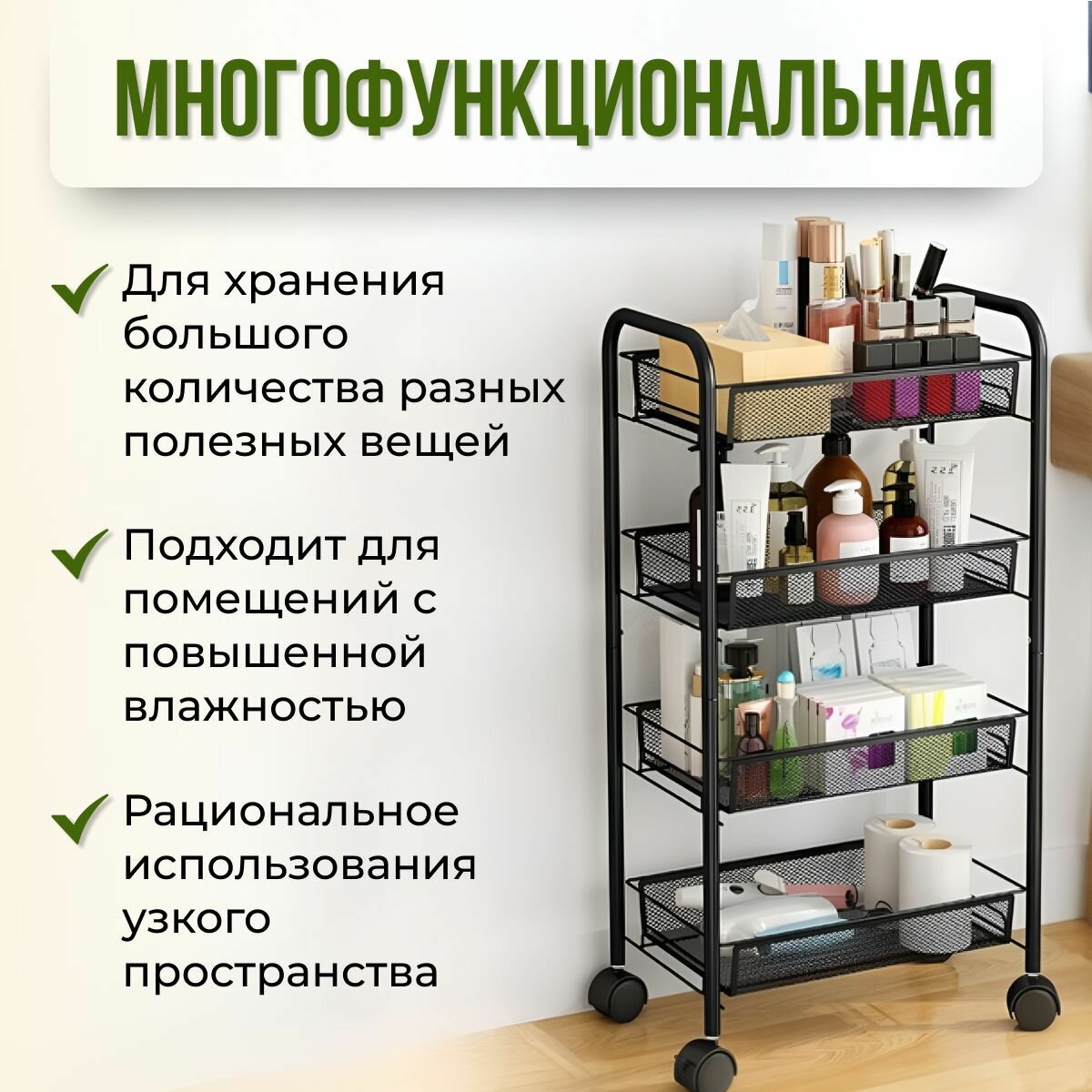 Отзывы на Этажерка на колесиках, Этажерка для ванной, кухни, 44,5x25x84 см, металл
