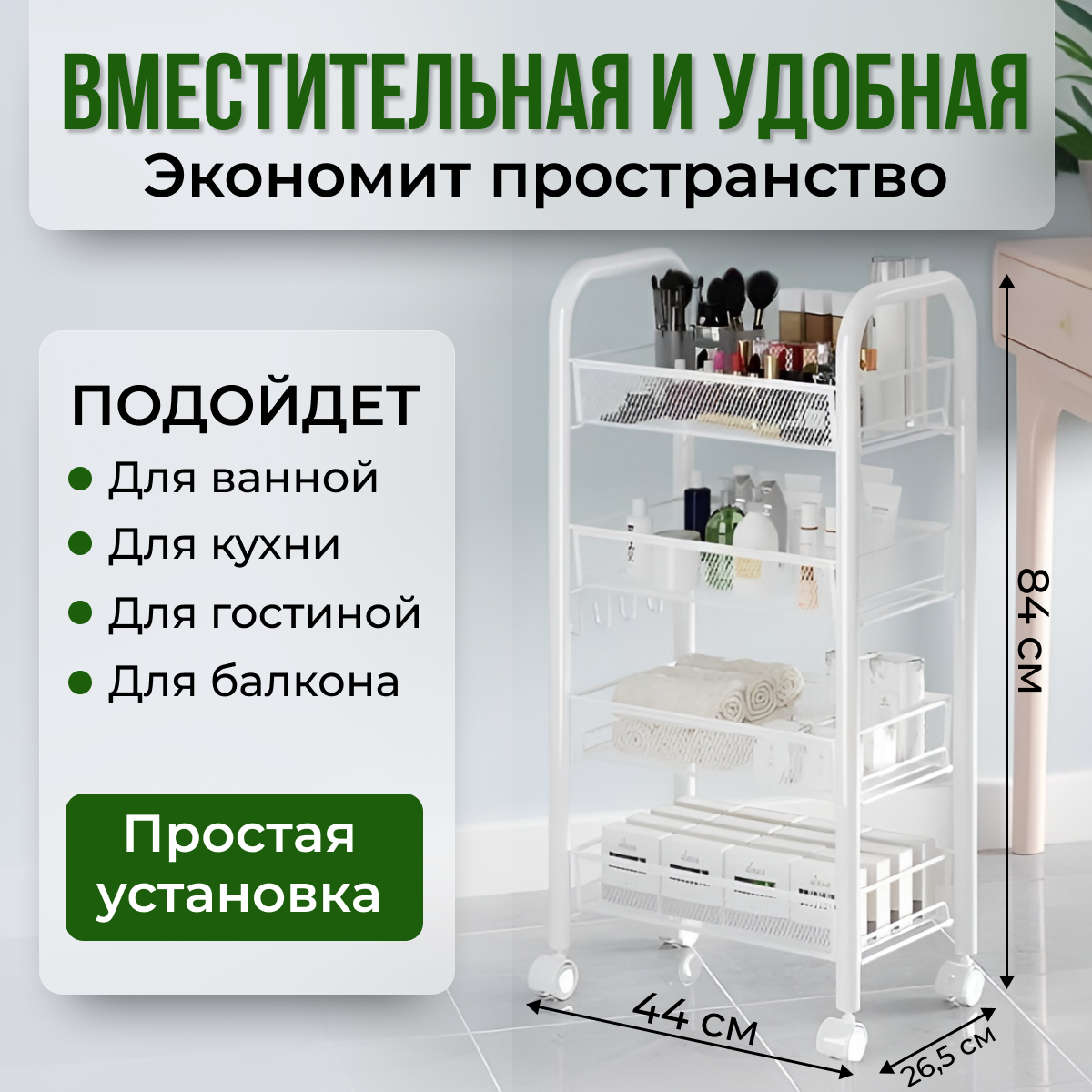 Этажерка на колесиках, Этажерка для ванной, кухни, 44x26x84 см, металл информация: