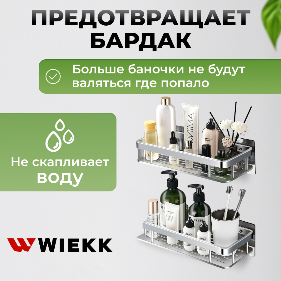 Отзывы на Полка для ванной и душевой без сверления на присосках Wiekk, прямая, белая, металлическая (комплект 2 шт.)