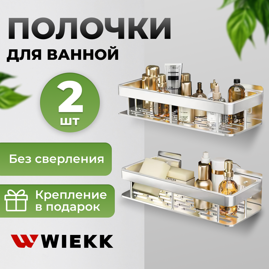 10 цен на Полка для ванной и душевой без сверления на присосках Wiekk, прямая, белая, металлическая (комплект 2 шт.)