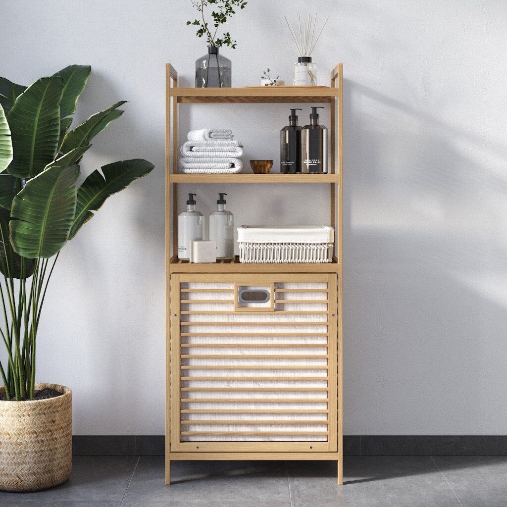 Отзывы на Этажерка для ванной из бамбука, Стеллаж для хранения с корзиной для белья Bambuchka, 50x30x120 см