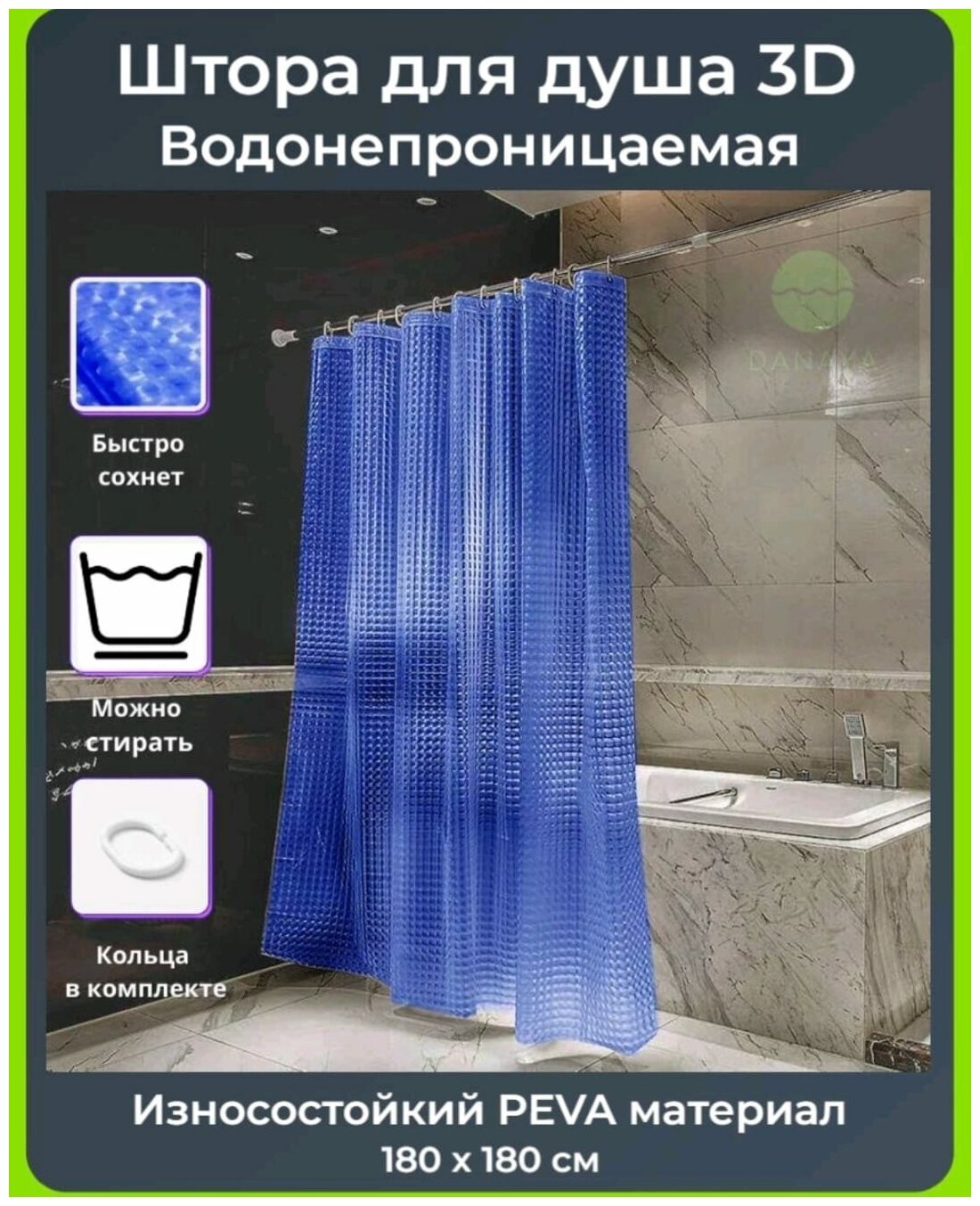 Штора для ванной комнаты с эффектом 3D, 180х180 см(синий) информация:
