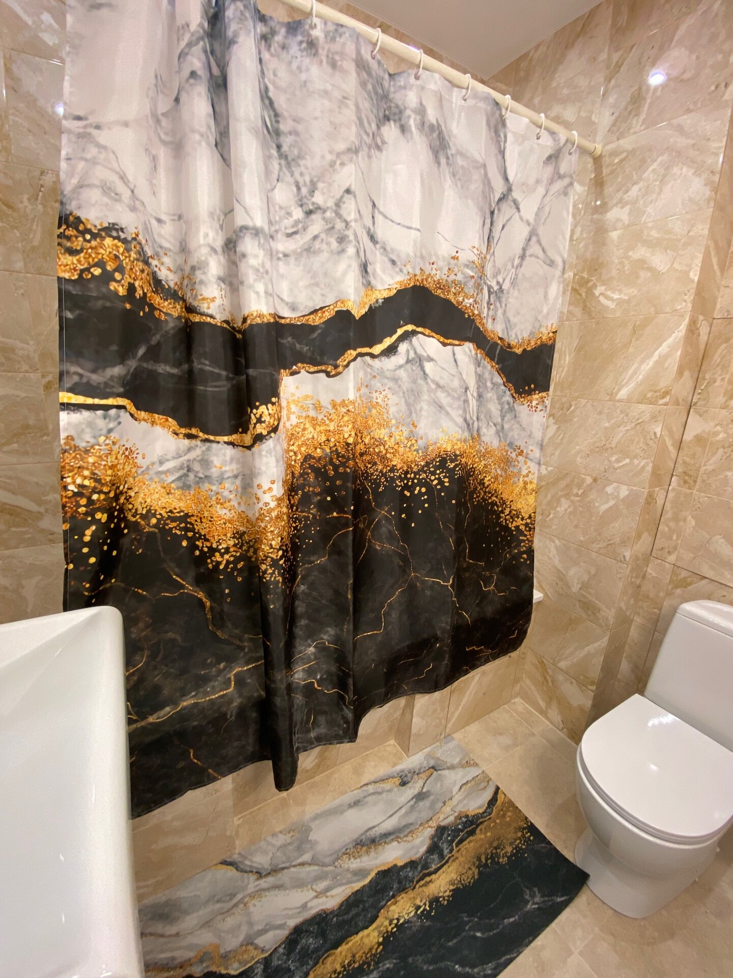 Штора для ванной тканевая с рисунком дуэт мрамор информация: