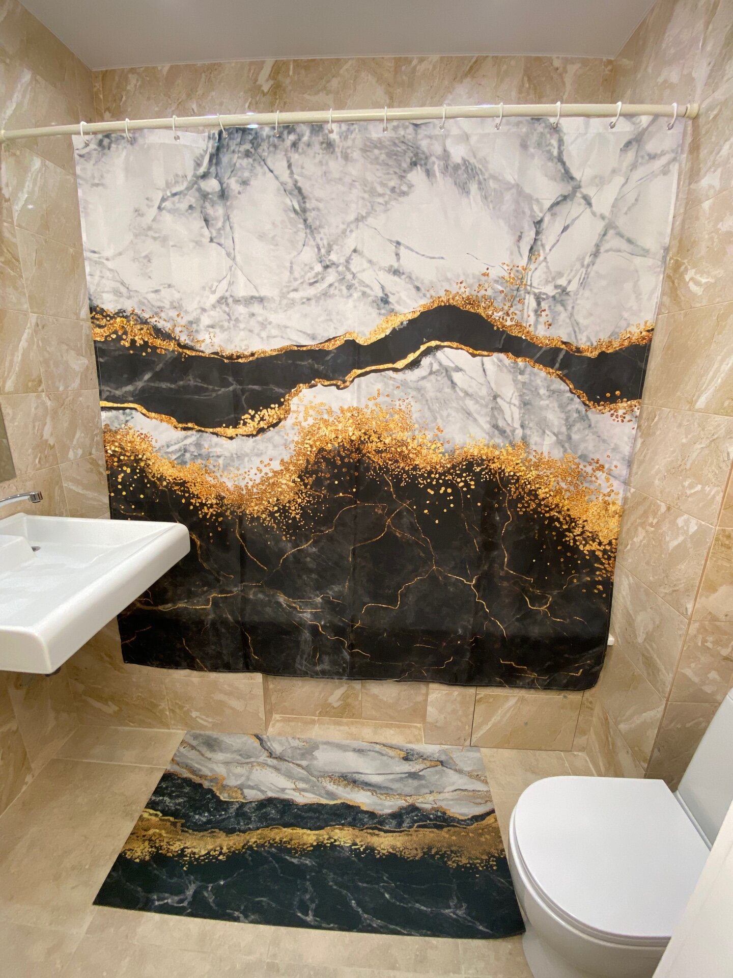 Штора для ванной тканевая с рисунком черный мрамор 759 ₽