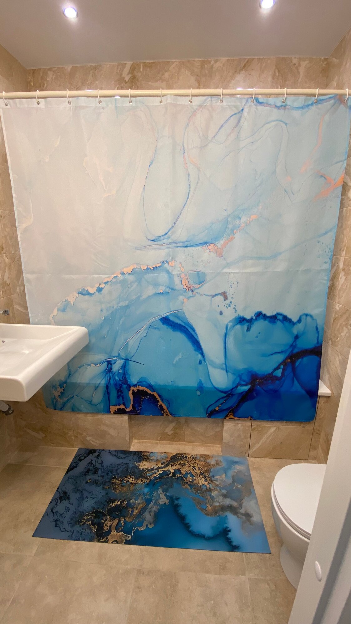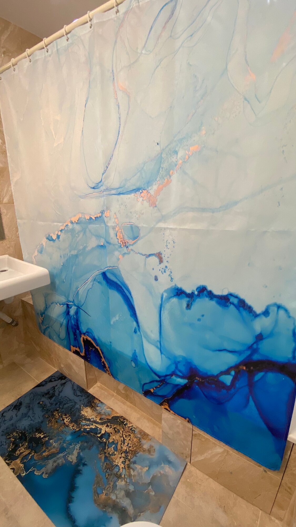 Штора для ванной тканевая с рисунком синий мрамор информация: