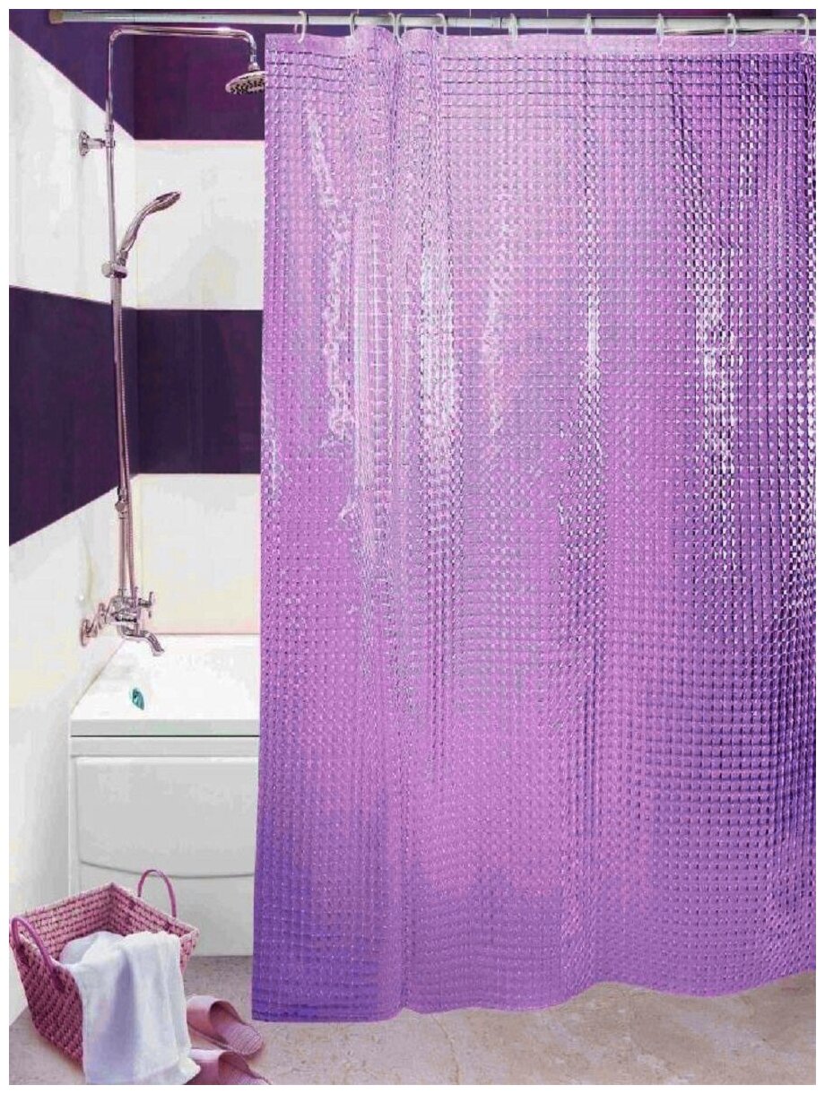 10 цен на Штора для ванной комнаты/ Занавеска в ванную/ штора для душа с кольцами FASHUN A8751 , 180х200 см фиолетовая 3D