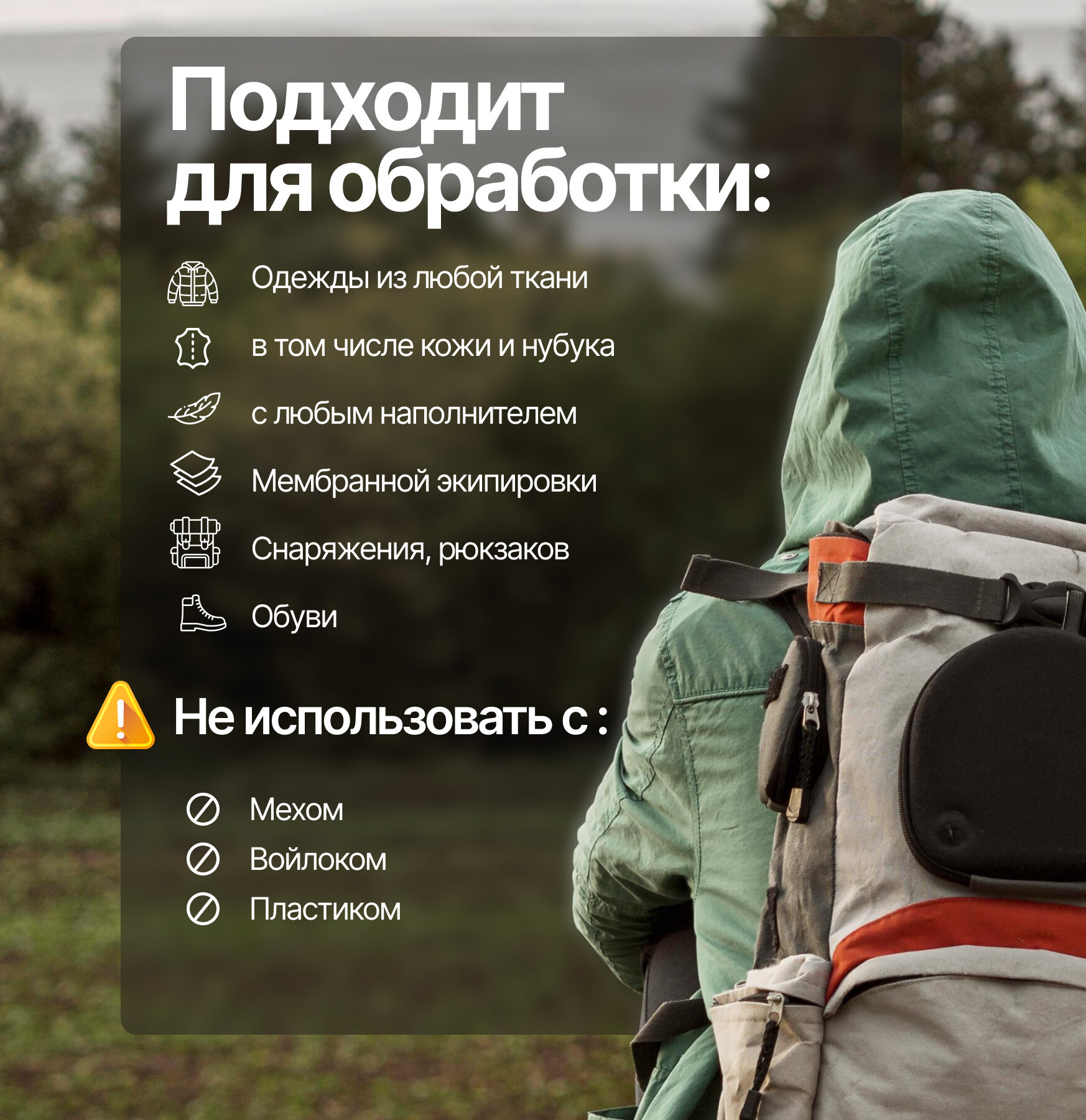 | Дополнительная информация | состав: зопропиловый спирт, бутилацетат, фторированный акриловый сополимер, диоксид кремния; 1 флакона достаточно для обработки 2-3 курток |