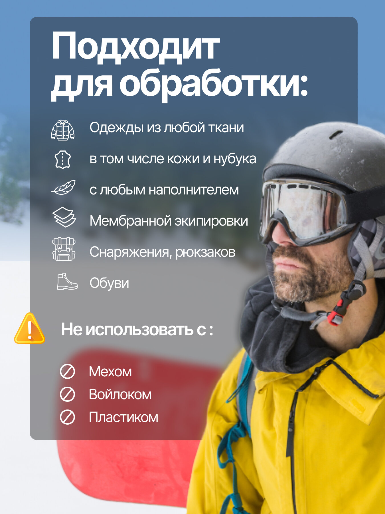 | Дополнительная информация | состав: зопропиловый спирт, бутилацетат, фторированный акриловый сополимер, диоксид кремния; 1 флакона достаточно для обработки 2-3 курток |