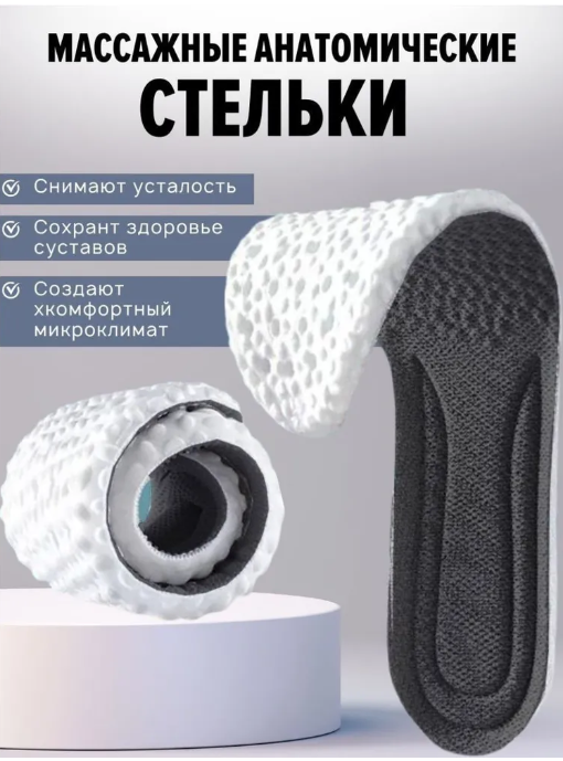 Стельки анатомические универсального размера от 40 до 45, от 26 до 29см. Спортивные, мягкие, амортизирующие, дышащие.