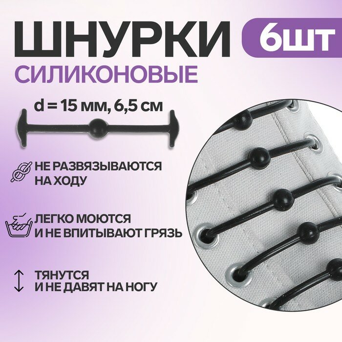 10 цен на Набор шнурков для обуви «Шар», 6 шт, силиконовые, круглые, d = 15 мм, 6,5 см, цвет чёрный(2 шт.)
