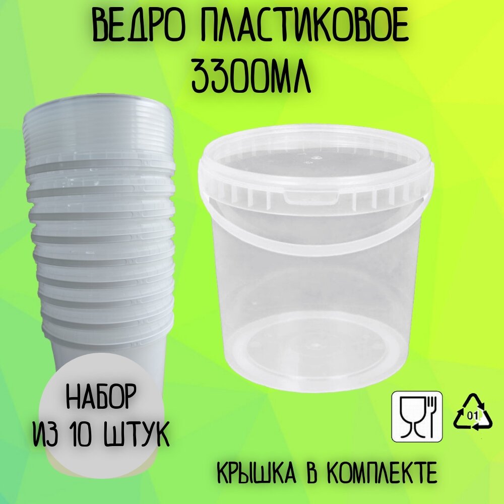Прозрачное пластиковое ведро объемом 3 литра, 10 штук в наборе, с крышкой и ручкой информация: