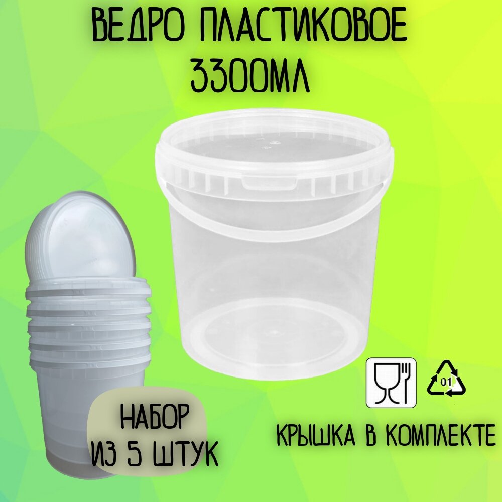 Прозрачные пищевые ведра на 3 литра, набор из 5 штук информация: