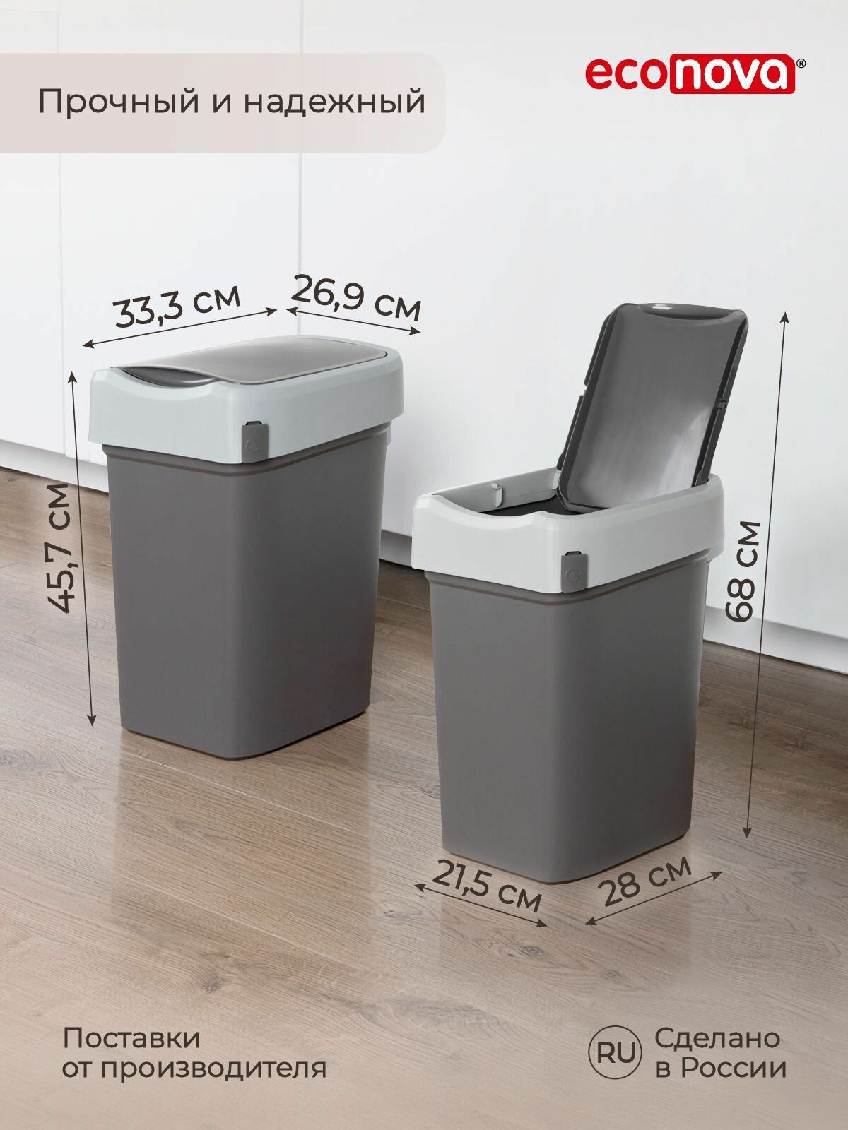 Мусорное ведро 25 литров Econova для кухни, туалета, офиса, с крышкой, напольный контейнер для хранения мусора, пластиковый, узкий, прямоугольный (серый)
