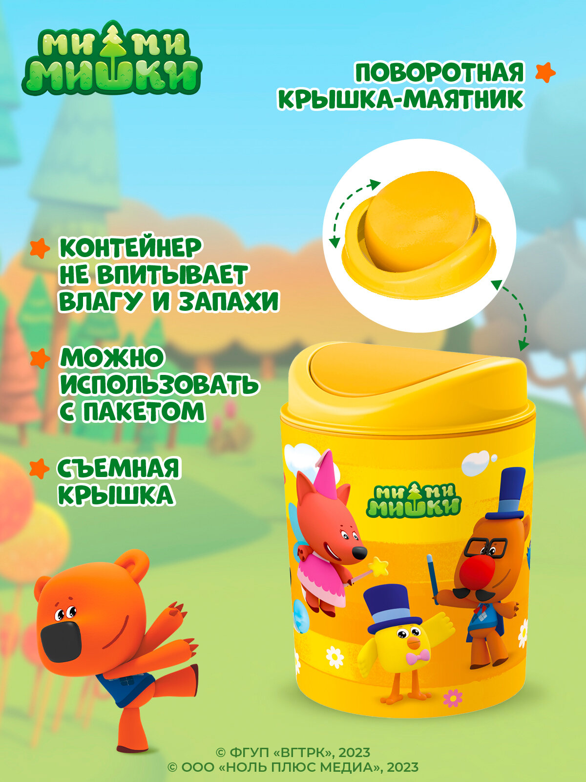 Контейнер для мусора С декором МИ-МИ-МИШКИ, 115х115х153ММ, 1Л (Оранжевый) 335 ₽