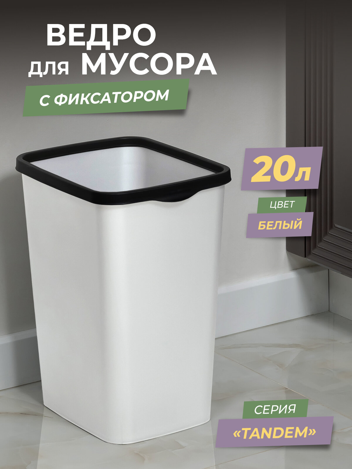 Мусорное ведро для кухни 20л с фиксатором Tandem, цвет белый / контейнер для мусора для туалета информация: