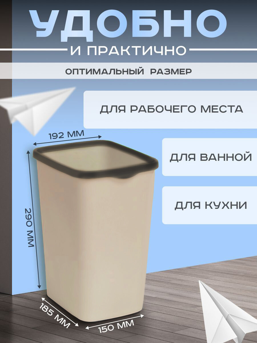 Мусорное ведро для кухни 10л с крышкой Tandem, цвет слоновая кость / контейнер для мусора для туалета