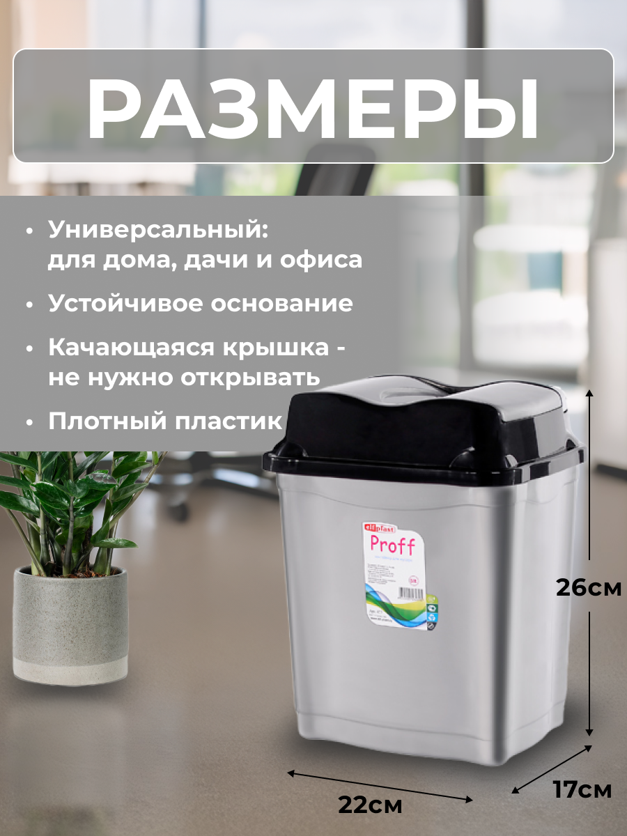 Настольное мусорное ведро PROFF 5 литров, пластиковое. 649 ₽