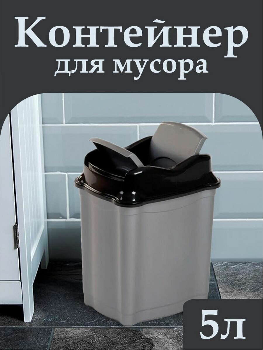 Контейнер elfplast "Proff" для мусора 5л, серый/черный 477 информация: