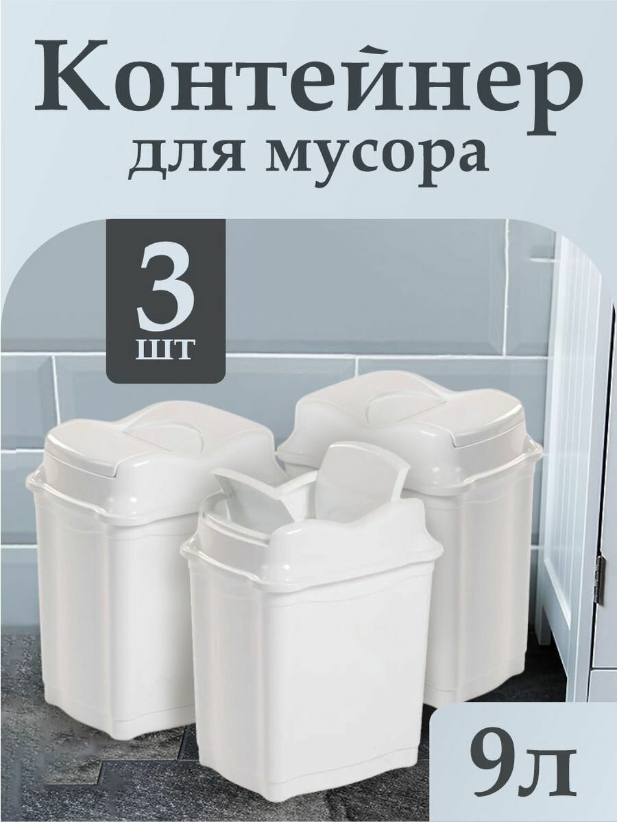 10 цен на Контейнер elfplast "Proff" для мусора 9л 3шт, белый 478