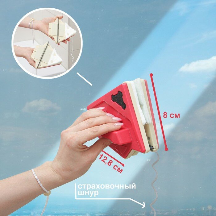 10 цен на Магнитная щётка для мытья окон с двух сторон Доляна, треугольная, с водосгоном, на стекло 3-8 мм