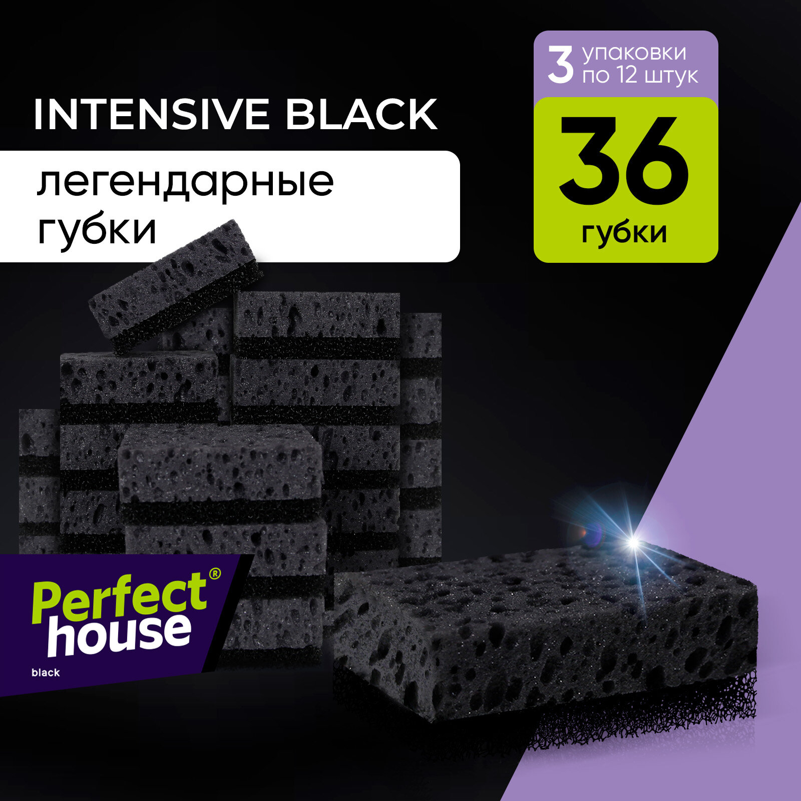 Губки для мытья посуды Perfect House Intensive black черные хозяйственные для уборки на кухне, 36 шт информация: