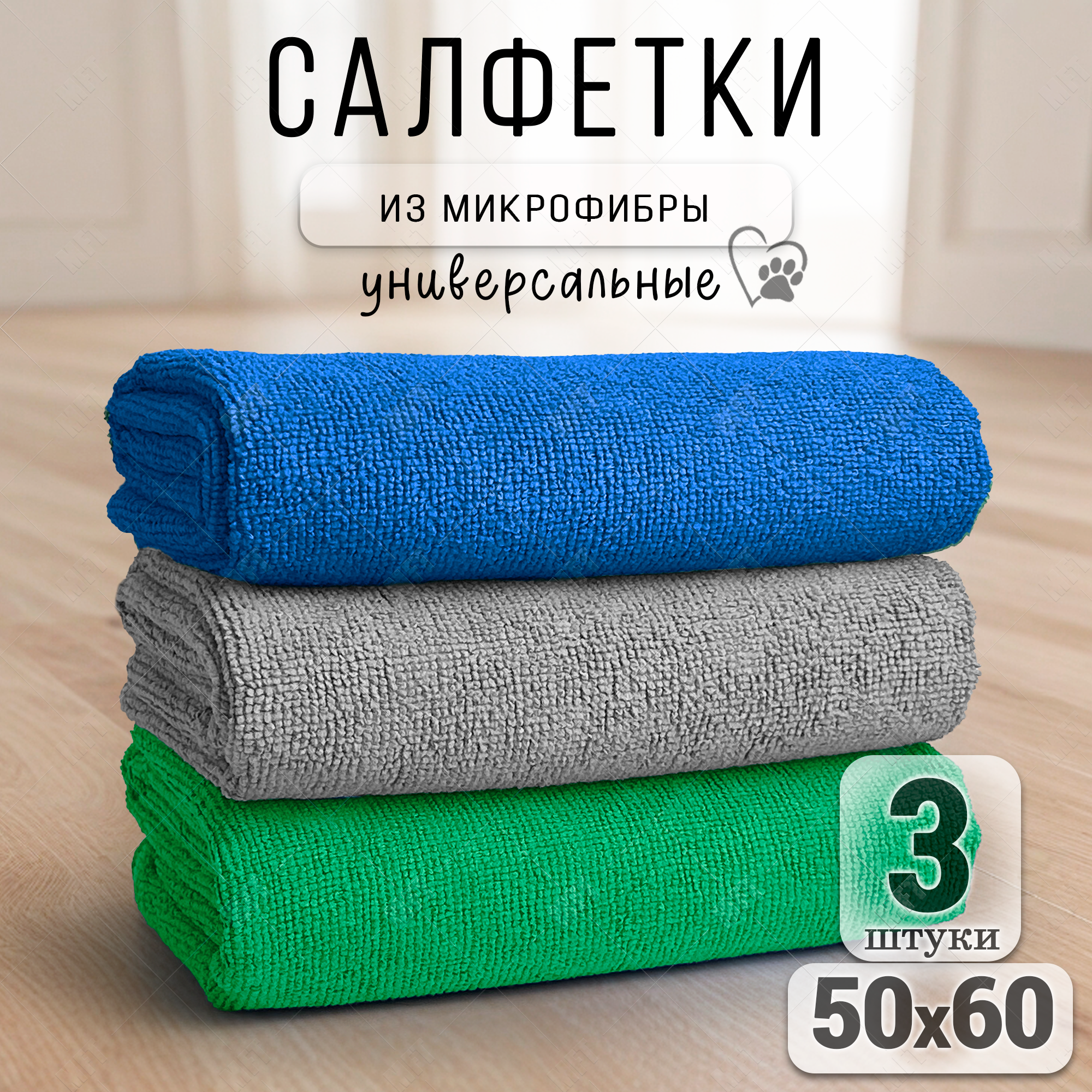 10 цен на Салфетки для уборки из микрофибры универсальные, тряпки для пола 50х60 см, цвет серый, синий, зеленый